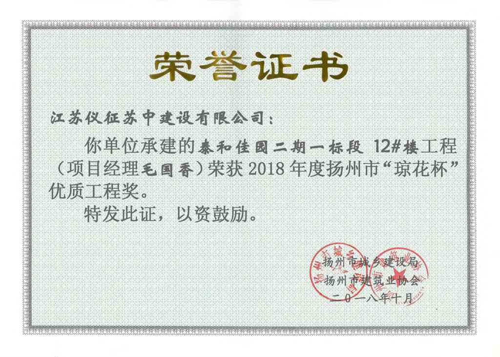 揚(yáng)州市優(yōu)質(zhì)結(jié)構(gòu)工程