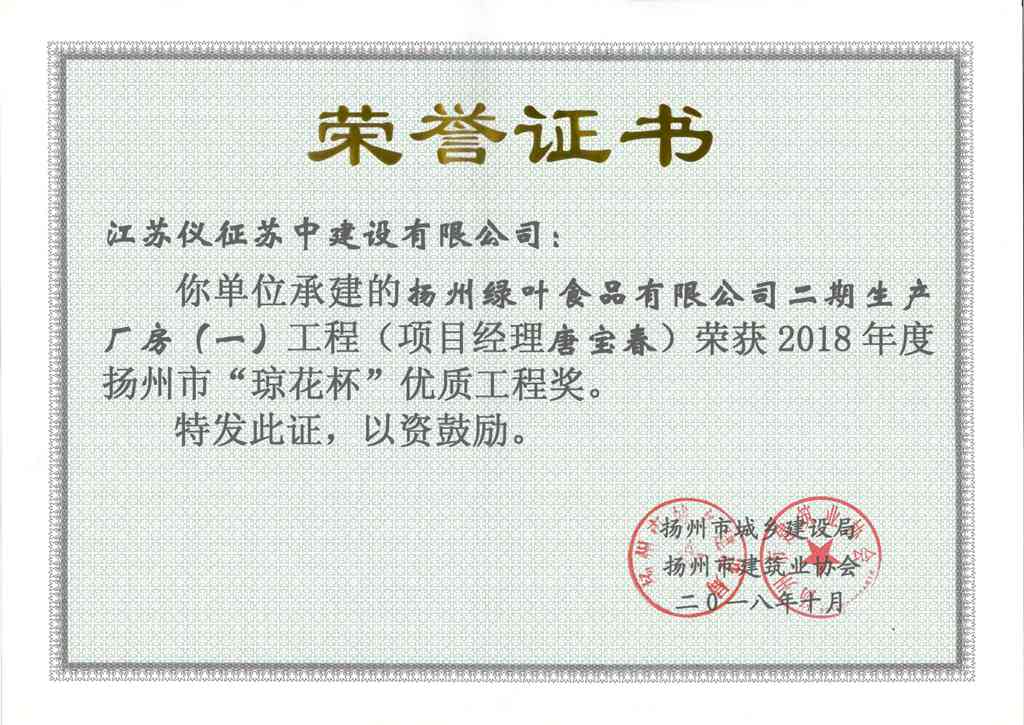 2018年度揚(yáng)州市瓊花杯優(yōu)質(zhì)…