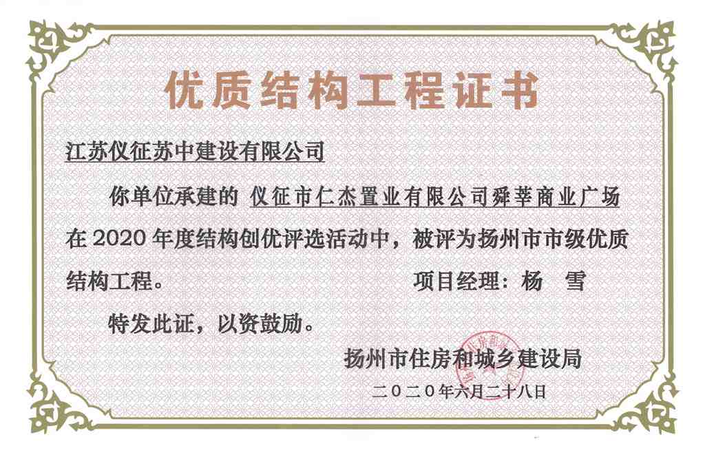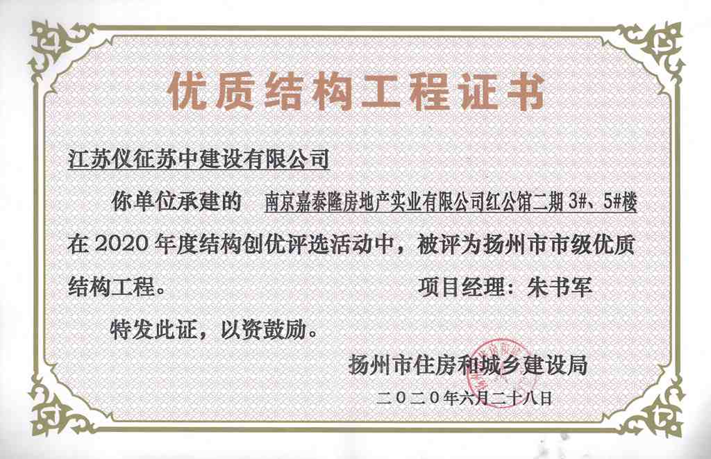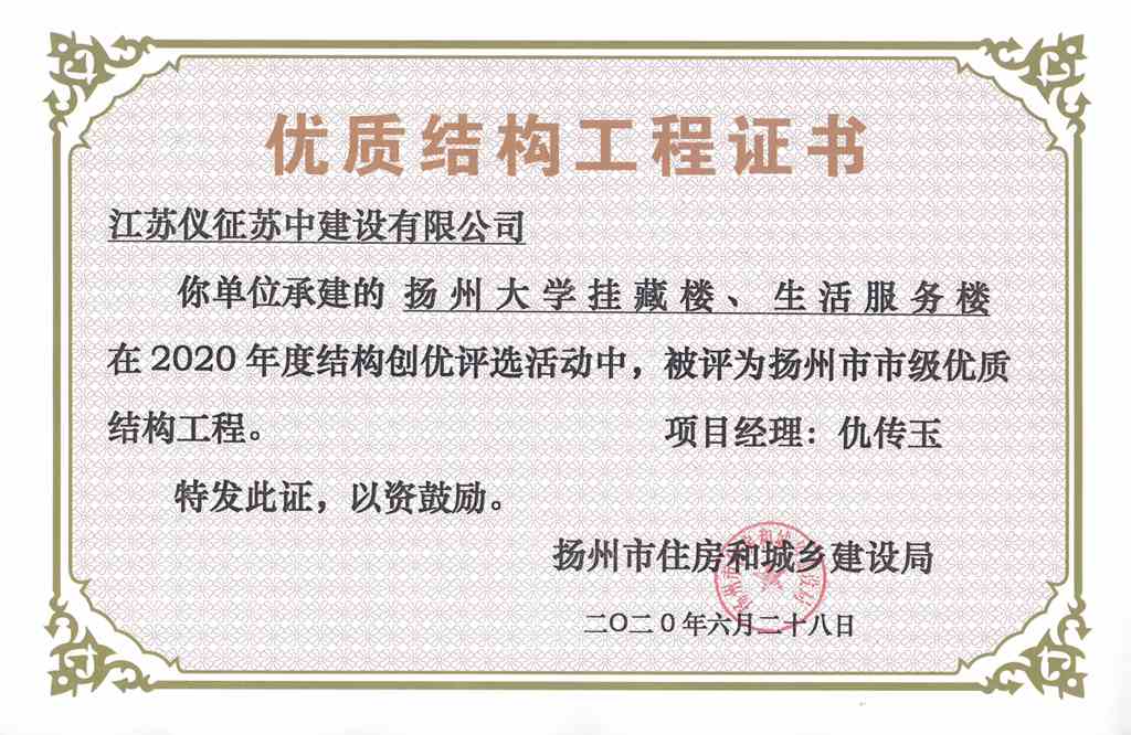 揚(yáng)州市優(yōu)質(zhì)結(jié)構(gòu)工程