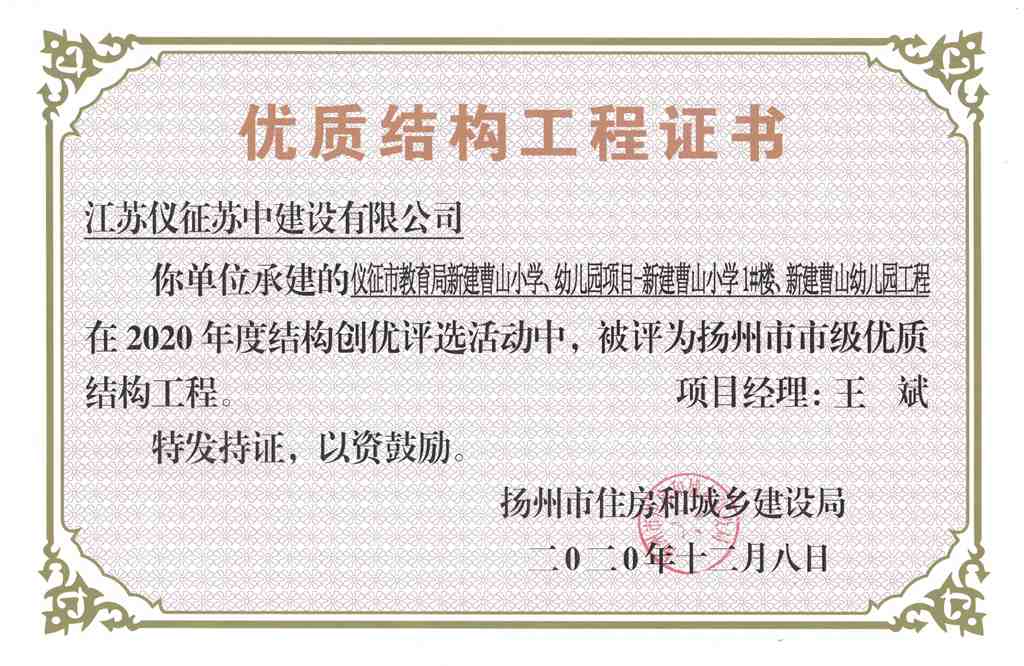 2020年度揚(yáng)州市優(yōu)質(zhì)結(jié)構(gòu)工…