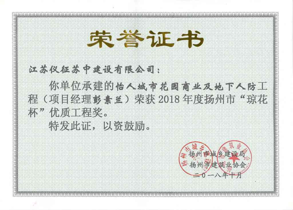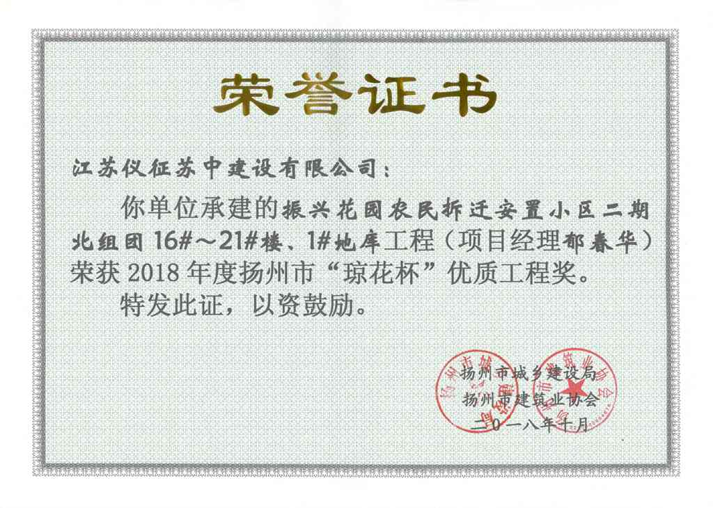 2018年度揚(yáng)州市瓊花杯優(yōu)質(zhì)…