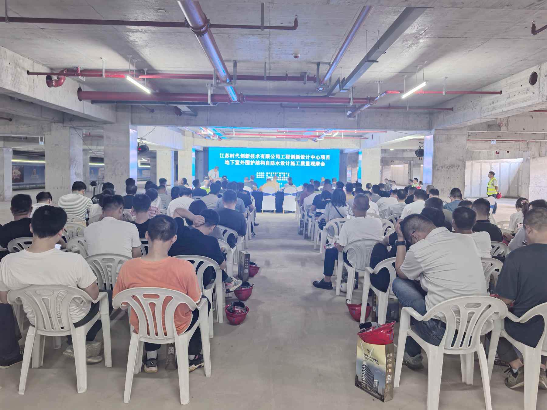 2025年第五次揚州市工程質(zhì)量監(jiān)督人員現(xiàn)場觀摩會議,于2025年8月25日上午在我公司承建的江蘇時代創(chuàng)新技術(shù)有限公司工程創(chuàng)新設(shè)計中心項目現(xiàn)場召開,揚州市建設(shè)工程管理中心、揚州市經(jīng)濟開發(fā)區(qū)建設(shè)局、江蘇時代創(chuàng)新技術(shù)有限公司有關(guān)領(lǐng)導(dǎo)、公司總經(jīng)理解志偉以及各縣(市、區(qū))質(zhì)量監(jiān)督機構(gòu)全體監(jiān)督人員等近百人到場參加活動。