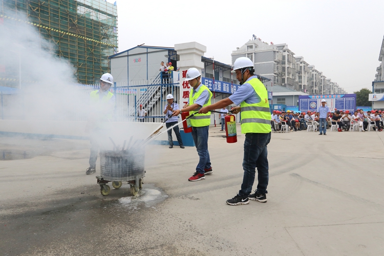 與會人員共同觀摩了沙河安置小區(qū)項目現(xiàn)場,工地現(xiàn)場安全施工生產(chǎn)行為的規(guī)范化、安全防護的標準化、場容場貌的整潔化,以及項目部進行的人員觸電及火災(zāi)事故應(yīng)急救援預(yù)案演練給大家留下了深刻印象。
