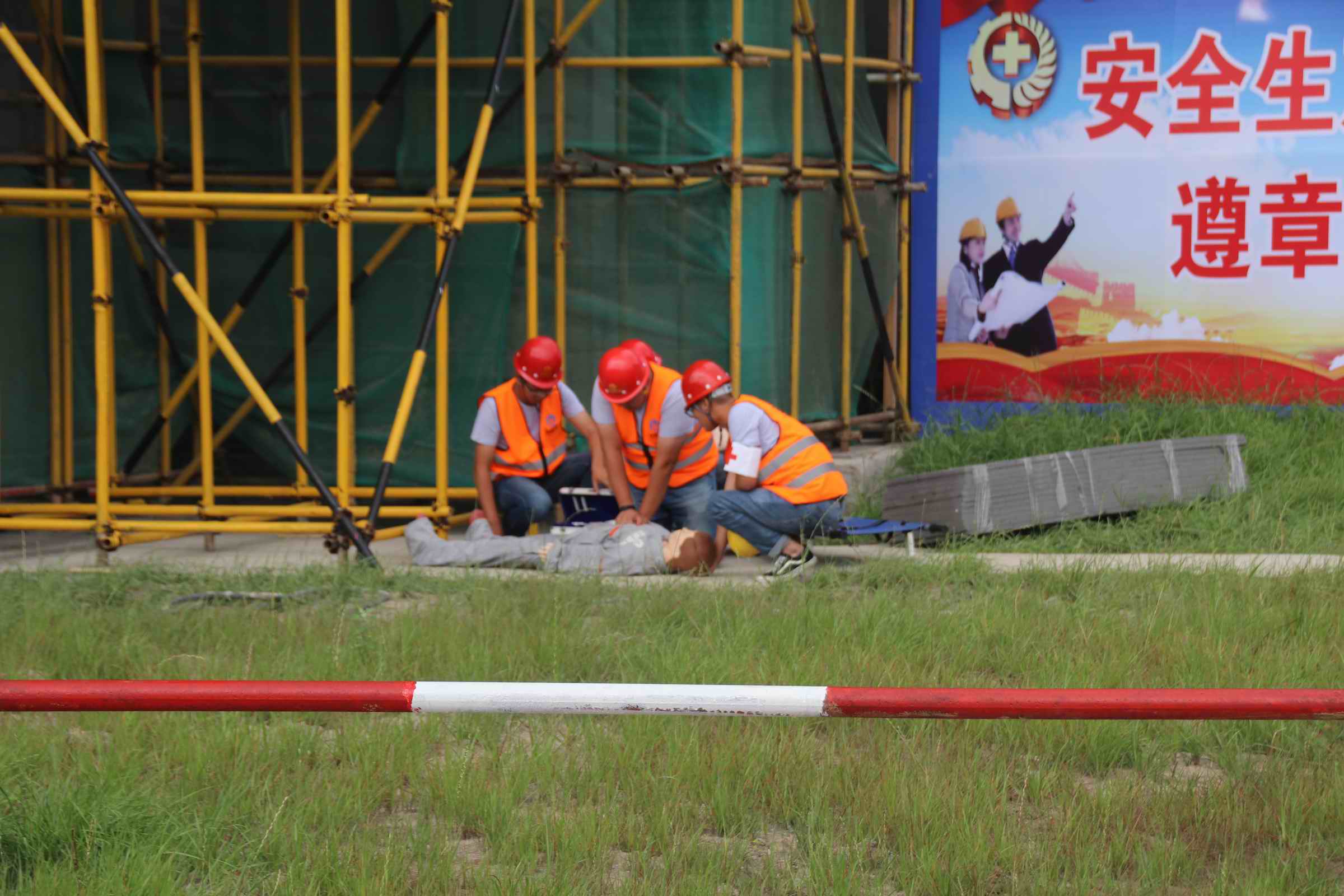 為切實(shí)提高全市建筑業(yè)從業(yè)人員防災(zāi)、避災(zāi)和自救、互救能力,進(jìn)一步提升施工現(xiàn)場安全文明標(biāo)準(zhǔn)化創(chuàng)建水平,6月27日上午,由儀征市住房和城鄉(xiāng)建設(shè)局主辦,蘇中建設(shè)等四家單位聯(lián)合承辦的2019年儀征市建筑施工應(yīng)急救援預(yù)案演練觀摩暨“安全生產(chǎn)月”活動總結(jié)會在古湄家苑安置小區(qū)成功舉辦。揚(yáng)州化工園區(qū)規(guī)建局、市應(yīng)急管理局、市住建局相關(guān)領(lǐng)導(dǎo)及職能科室負(fù)責(zé)人,全市各建筑施工企業(yè)、監(jiān)理企業(yè)的分管負(fù)責(zé)人,項(xiàng)目經(jīng)理、項(xiàng)目總監(jiān)等150余人參加了這次活動。