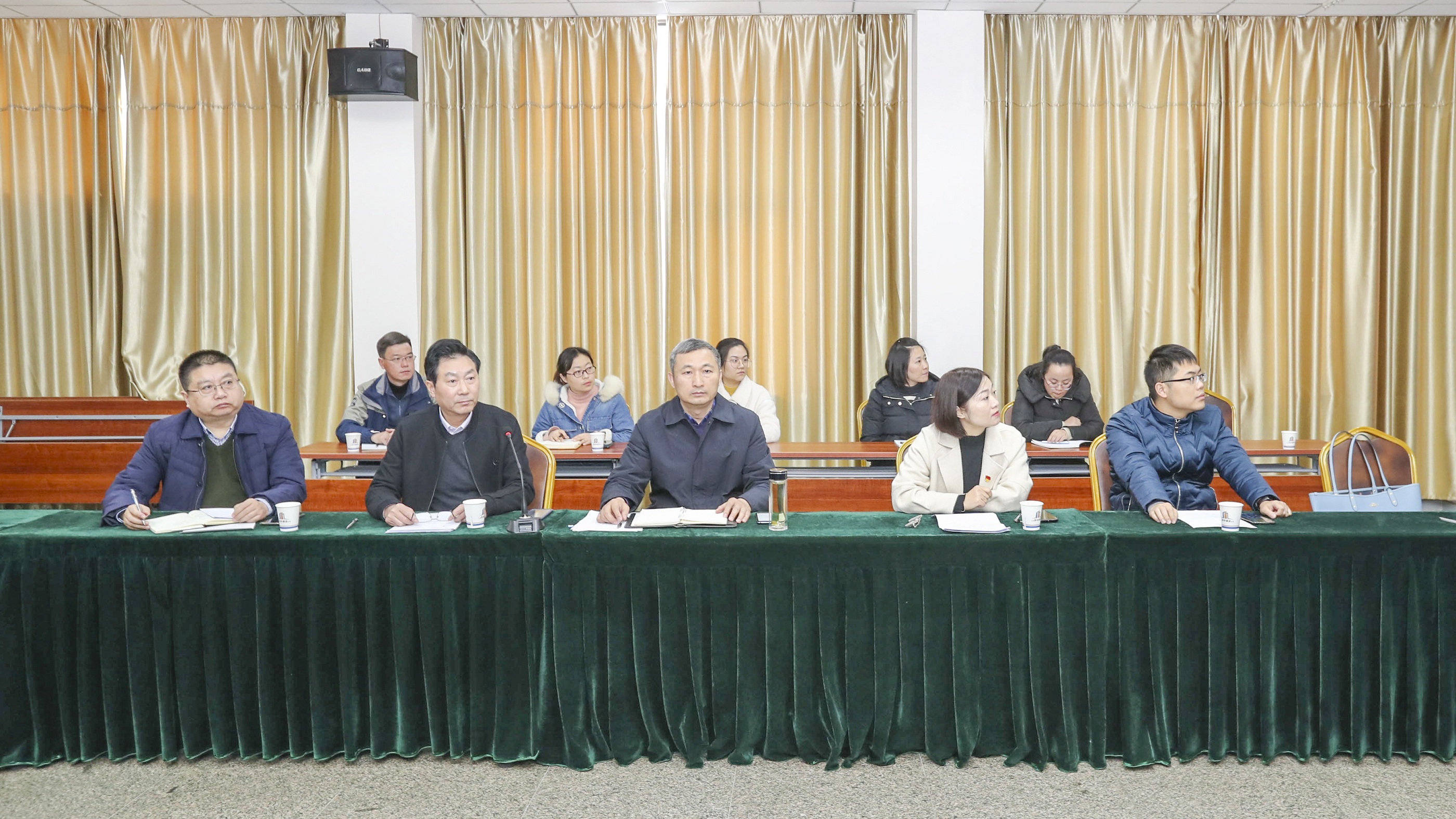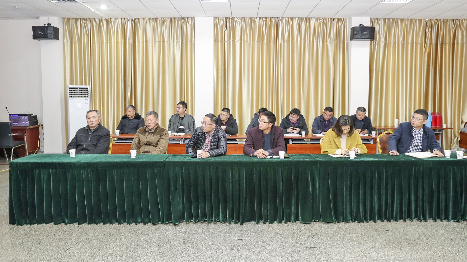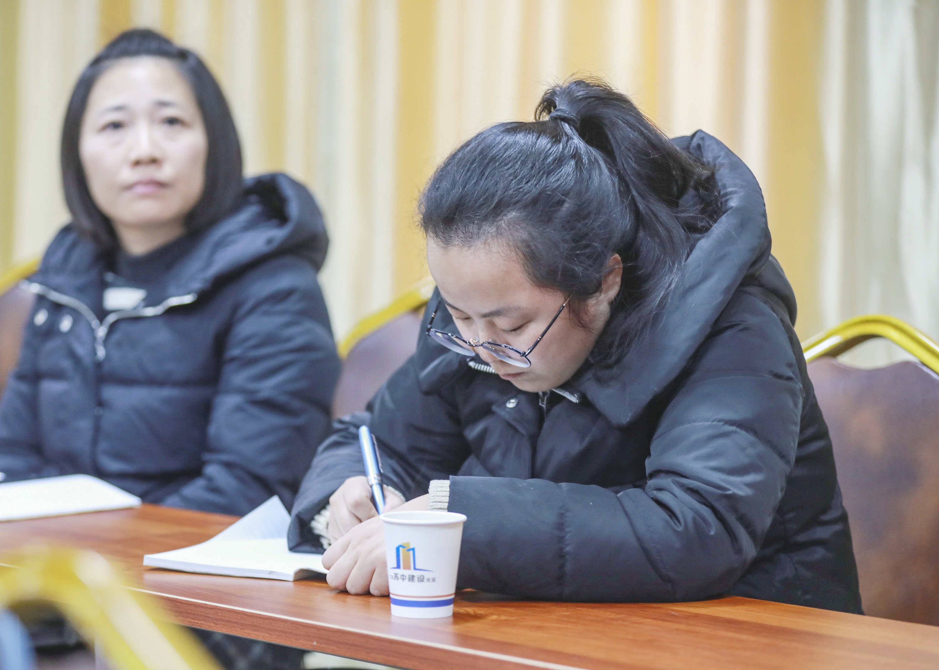 與會(huì)黨員聽黨課、做筆記