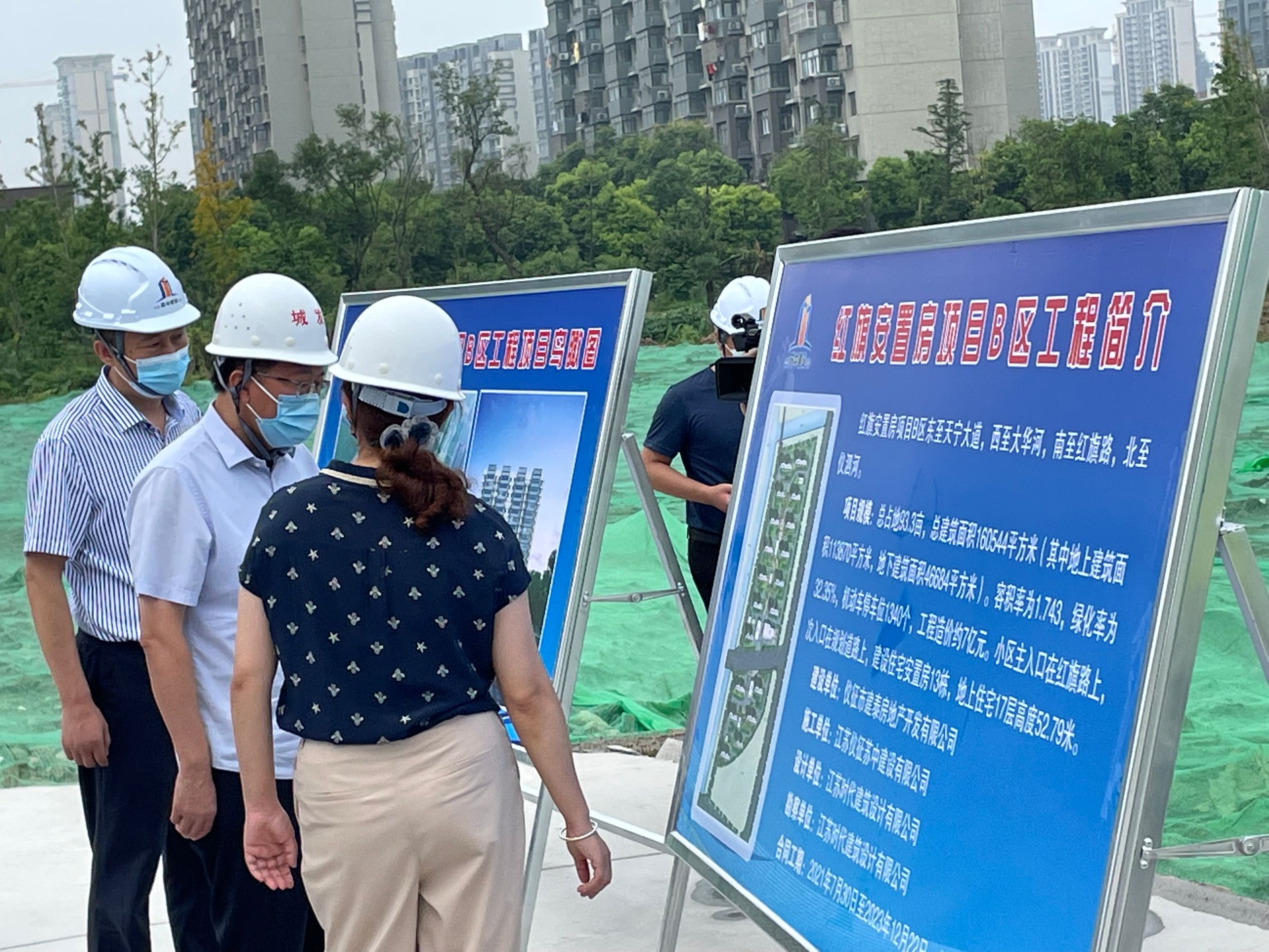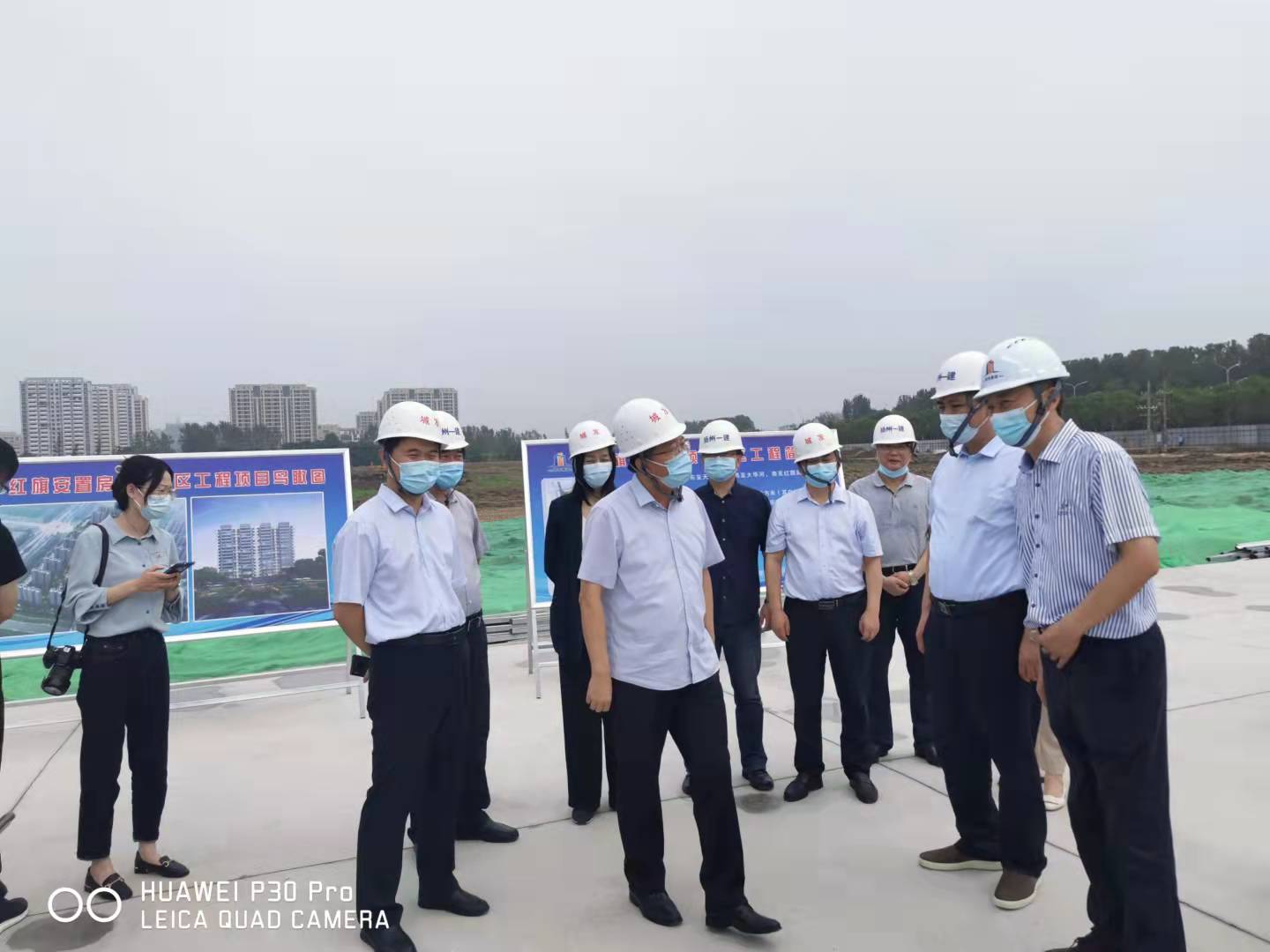2021年8月29日上午,儀征市委書記孫建年率隊調(diào)研我公司承建的紅旗安置房B區(qū)工程建設(shè)項目和防疫工作,市委副書記、宣傳部部長沈文杰,市委常委、真州鎮(zhèn)黨委書記胡海洋,副市長俞蕾參加活動,市住建局局長竇成松,市城發(fā)集團董事長郭慶明等領(lǐng)導(dǎo),公司董事長金玉平、副總經(jīng)理解志偉陪同視察。